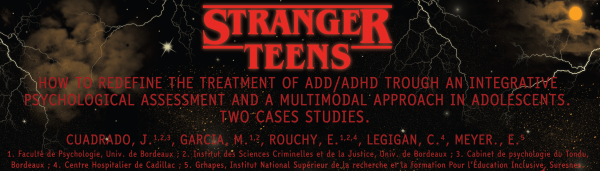 STRANGER TEENS: HOW TO REDEFINE THE TREATMENT OF ADD/ADHD THROUGH AN INTEGRATIVE PSYCHOLOGICAL ASSESSMENT AND A MULTIMODAL APPROACH IN ADOLESCENTS. TWO CASE STUDIES. CUADRADO, J. 1,2,3 ., GARCIA, M.1,2., ROUCHY, E.1,2,4, LEGIGAN, C.4, MEYER., E.5 1 Université de Bordeaux, Faculté de Psychologie, 3 Ter, place de la Victoire, Bordeaux 33076, France2 ISCJ (Institut des Sciences... Lire la Suite →